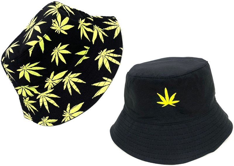 Kapelusz Bucket Hat to jeden z najmodniejszych letnich akcesoriów. Można go nosić nie tylko na plaży czy spacerze, ale także harmonijnie wpasować się w miejskie stylowe wizerunki. Prezentowany kapelusz dwustronny, jedna strona w nadruk z zawrotna ilością żółtych liści na czarnym tle, natomiast po wywróceniu na drugą stronę prezentuje się jeden okazały liść marihuany.