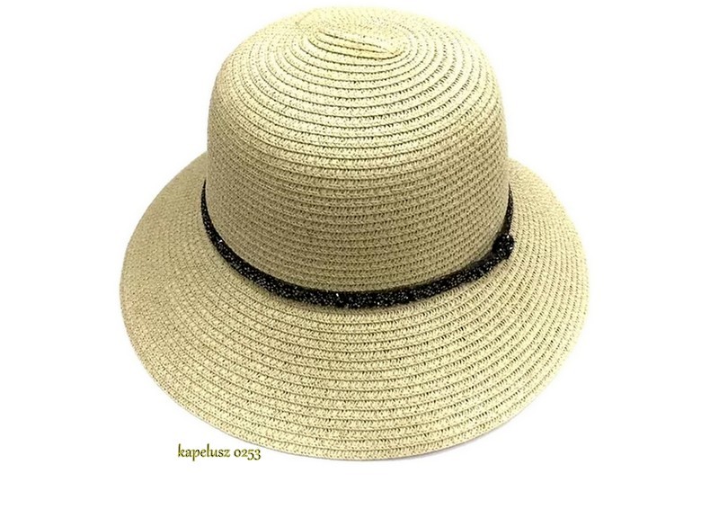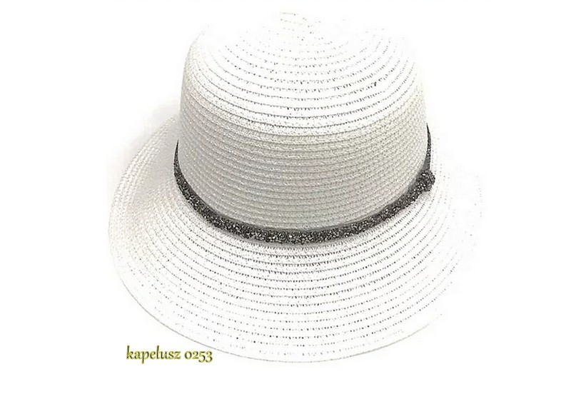Modny kapelusz w odcieniach natury ze srebrną plecionką HURT.
