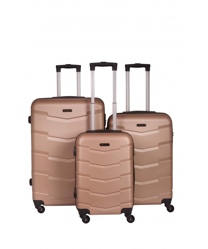 Komplet walizek ABS 3 szt. Wymiary: Wysokość 55/64/74 cm Szerokość 40/47/52 cm Głębokość 20/24/28 cm Pojemność 30/54/90 cm Waga 2.45/3.1/4 kg