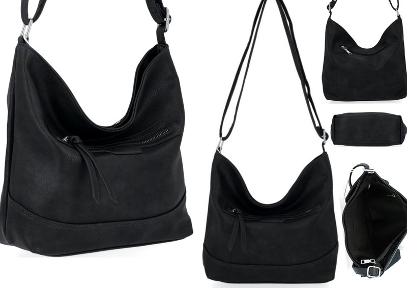 Pakowna czarna duża torebka listonoszka hurt z ozdobnym suwakiem.