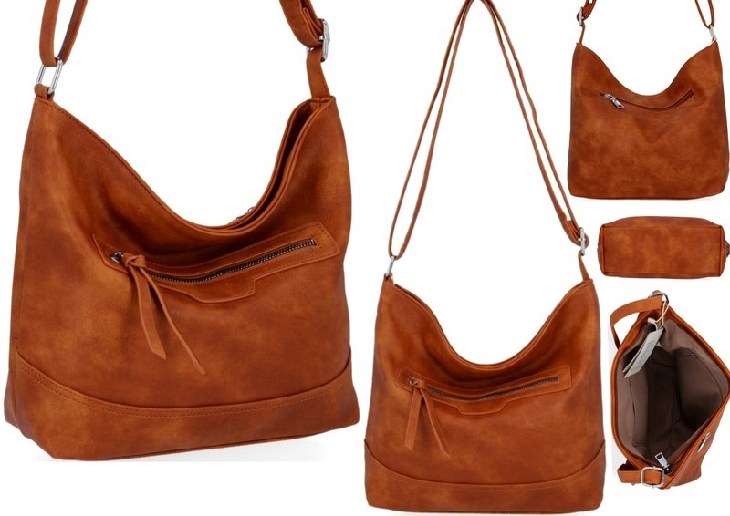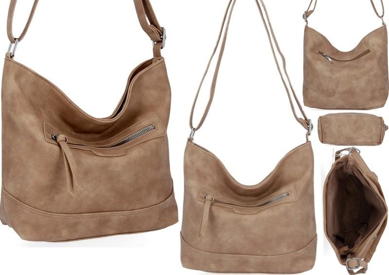 Pakowna duża torebka listonoszka hurt z ozdobnym suwakiem.