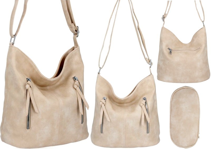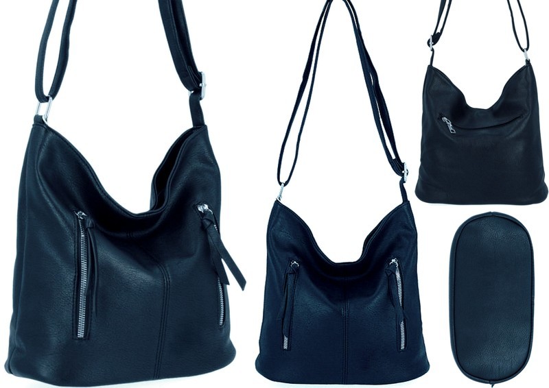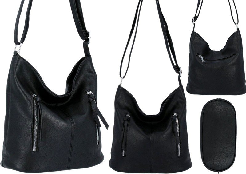 Miękki i wygodny model torby damskiej hurt torebki typu listonoszki casual z szerokim wejściem zamykanym na suwak. Torebka wykonana z wysokiej jakości skóry ekologicznej. Dwie użytkowe kieszenie na przedniej ścianie torebki zakończona ozdobnymi zamkami i efektownym ściegiem . Z tyłu torebki również kieszonka. Doskonały wybór na spacery po mieście jak również na książki do szkoły, wejdzie mięki zeszyt A4. Długi regulowany pasek ( max 134 cm ) umożliwia wygodne i komfortowe noszenie torebki przez ramię. Klasyczny model dopasujesz do wielu różnorodnych stylizacji, a dodatkowe 3 kieszeni ( na telefon, na drobiazgi i na suwak ) w środku ułatwią uporządkowanie Twoich rzeczy.