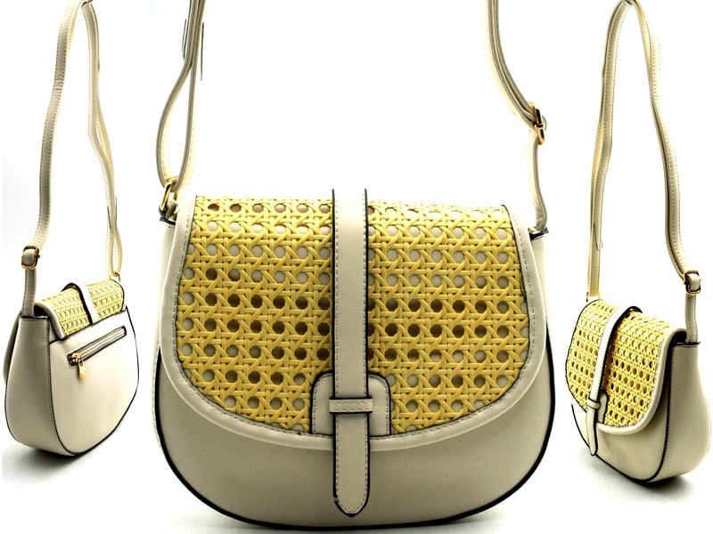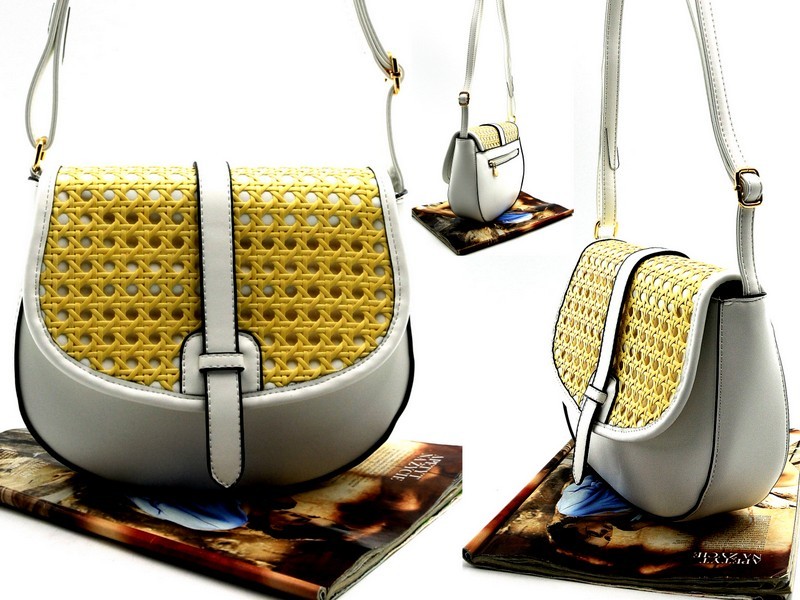Uroczy model hurt torebki listonoszki przez ramię. Półokrągły kształt torebki damskiej jest nie mniej popularny wśród kobiet o wyrafinowanym guście. Brak ostrych rogów na torebce oraz delikatny dekor z modnej w tym sezonie imitacji słomy na przedniej ścianie nadaje obrazowi delikatności i kobiecości z nawiązaniem do natury. Torebka damska idealna na co dzień. Wykonana z wysokiej jakości skóry ekologicznej, niezwykle komfortowa w użytkowaniu.