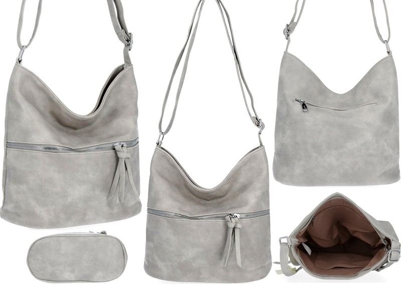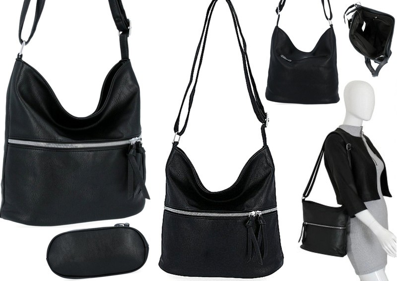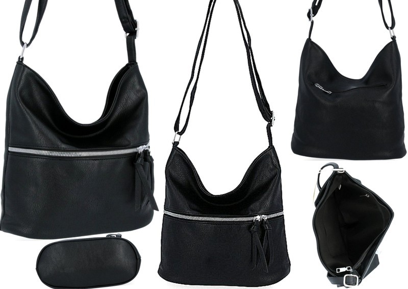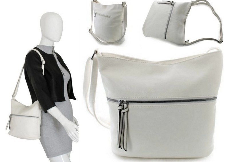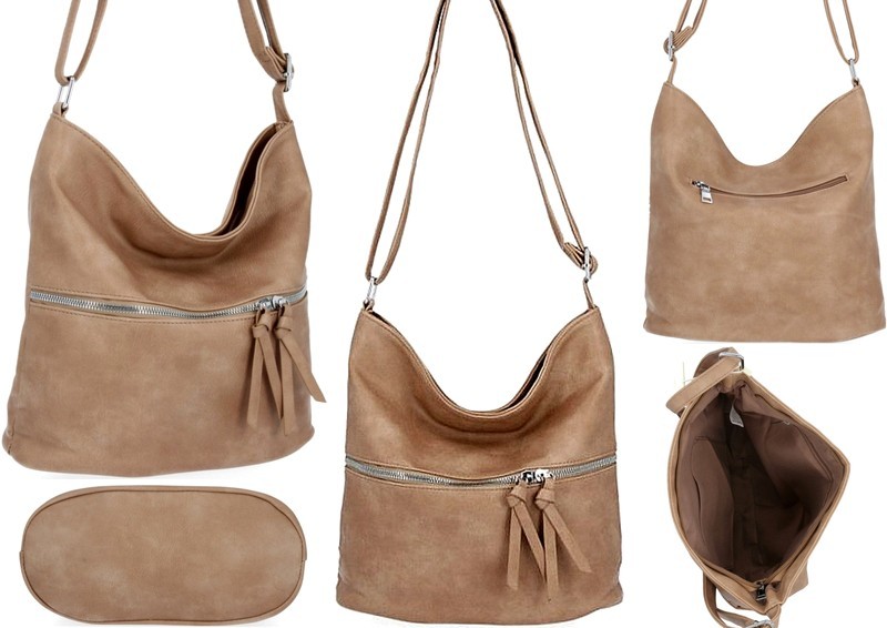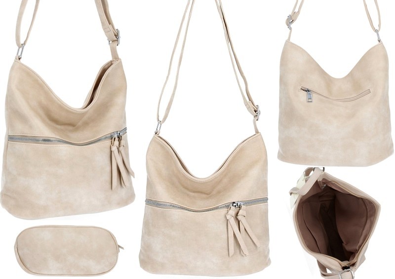 Kompaktowy model torebki ale zawiera wszystko, czego potrzebujesz. Szeroki, wygodny pasek. Ponadczasowy model torebki damskiej, klasyka nic zbędnego, - prostota i wygoda. Torebka w formie wygodnego worku, pożądanego przez Kobiety praktyczne, ponieważ jest bardzo wygodna do użytku codziennego. Przód torebki udekorowany poziomym metalowym suwakiem, który sprytnie chowa przepastną kieszeń. Ponadto klasyczny kształt z pewnością pasuje do większości stylizacji, jak codziennych tak i wieczorowych. Komfort użytkowy zapełniają liczne kieszonki.