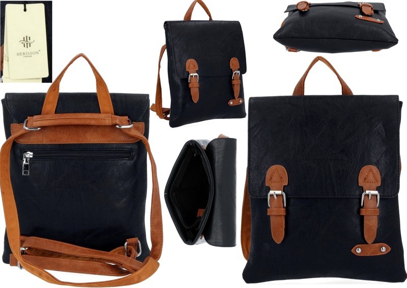 Stylowy dwukolorowy plecak miejski w stylu VINTAGE łatwo przemienia się z plecaka w torebkę i odwrotnie, wystarczy zmienić położenie pasków,