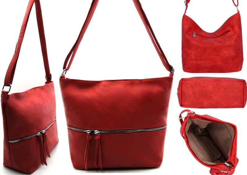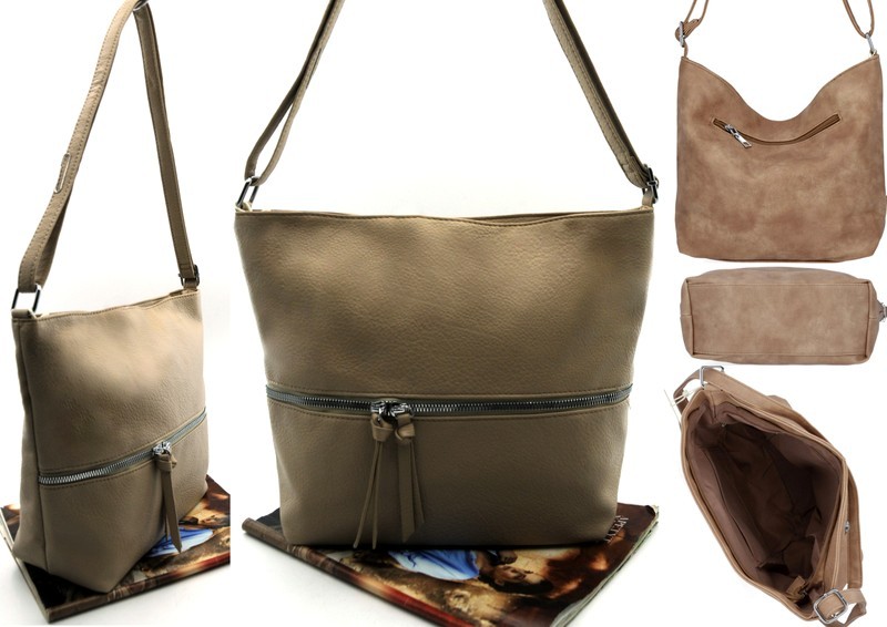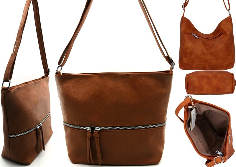 Klasyczny zawsze aktualny model torebki damskiej, który cieszy się popularnością i jest poszukiwany już od kilku lat. Popularność zyskał dzięki nadzwyczajnej wygodzie użytkowej oraz idealnemu kształtu, który pasuje niemal do wszystkich bez wyjątku stylizacji, zarówno biznesowych, romantycznych, casualowych. Torebka wykonana z miękkiej wysokogatunkowej skóry ekologicznej, dzięki czemu zawsze idealnie dopasowuje się do zawartości, na długim regulowanym pasku. Ciekawą ozdobę stanowi metalowy poprzeczny zamek, który idzie przez całą przednią ścianę torebki zamek i sprytnie ukrywa dużą kieszeń,