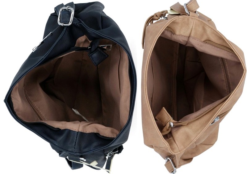 1. Kompaktowa, a zarazem pojemna torebka posiada jedną przegrodę, zamykaną na zamek błyskawiczny,