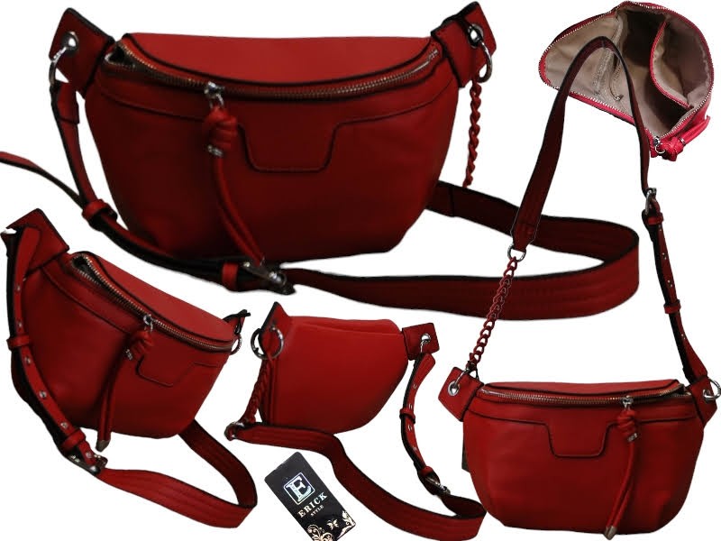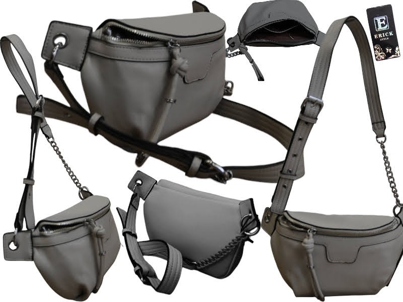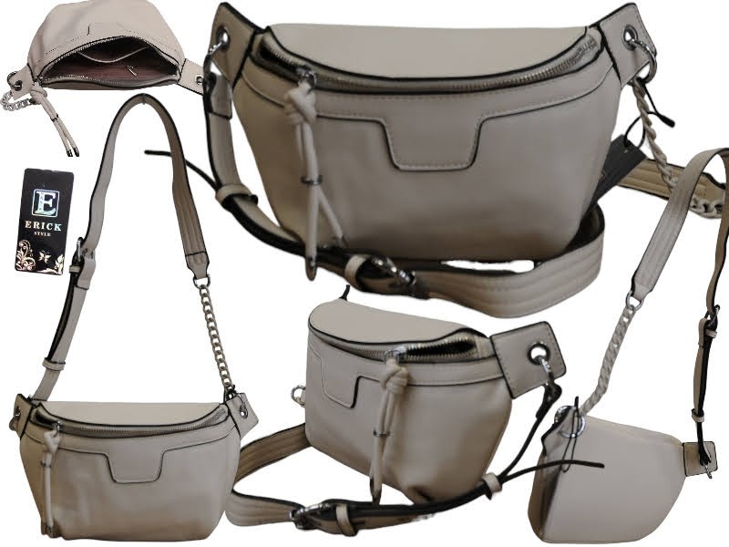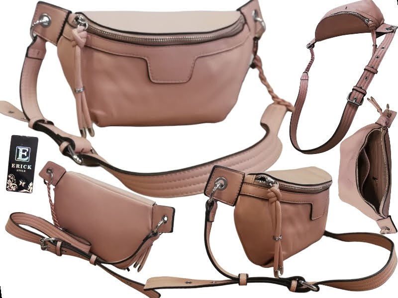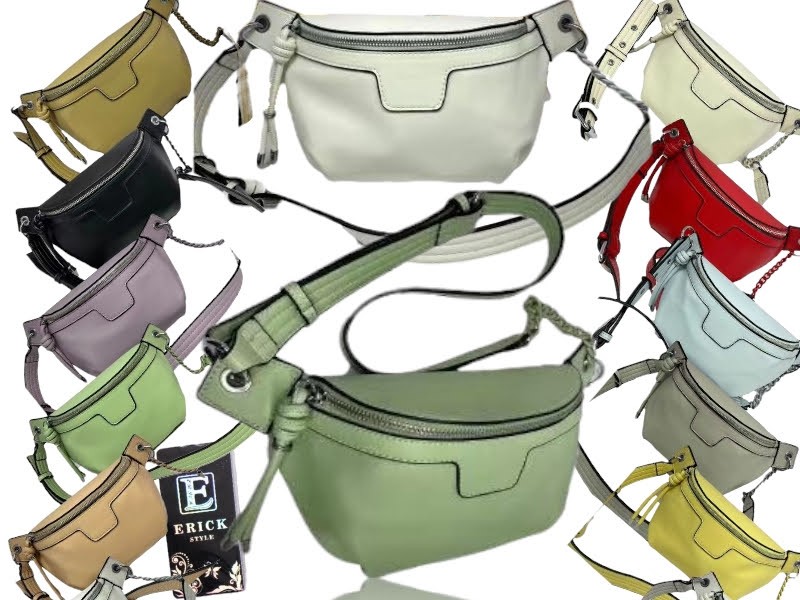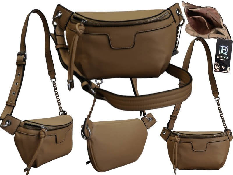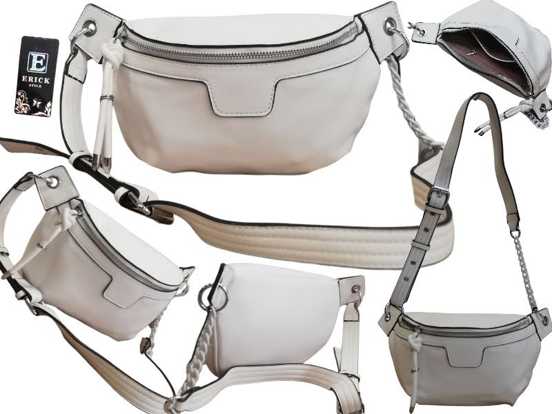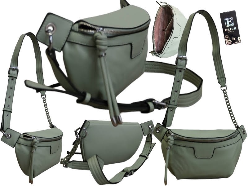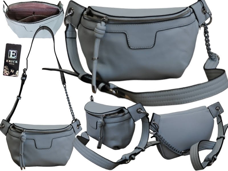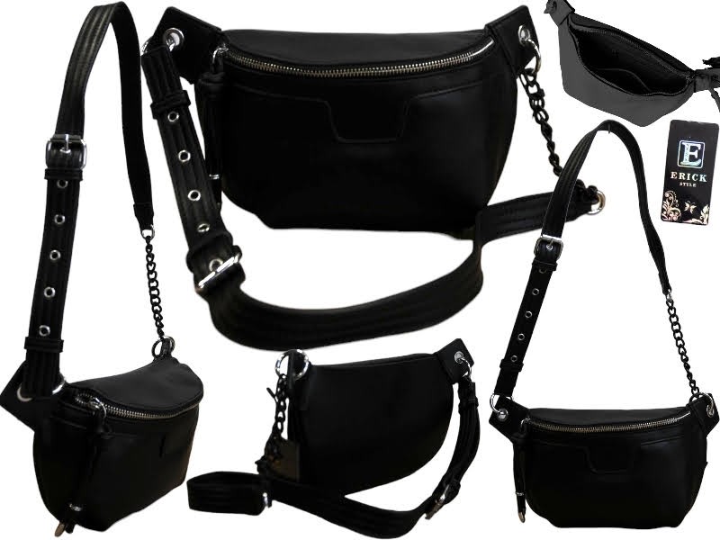 Stylowa i elegancka torebka -nerka włoskiej marki Erick Style wykonana z wysokiej jakości miękkiej skóry ekologicznej z oryginalnym łańcuszkiem, wmontowanym w pasek.
