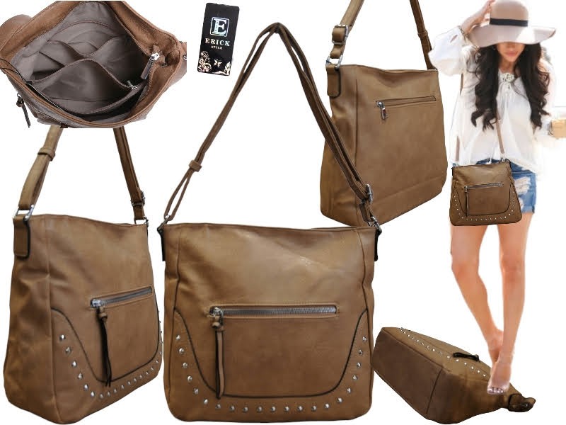 Stylowa torebka listonoszka na długim pasku stanie się nieodzownym dodatkiem wiosennej garderoby. Twoje Klientki polubią ten model włoskiej marki Erick Style za ciekawy nowoczesny design i wygodę użytkową. Przód torebki zdobią delikatne ćwieki z lekkim nawiązaniem do stylu Rockowego.