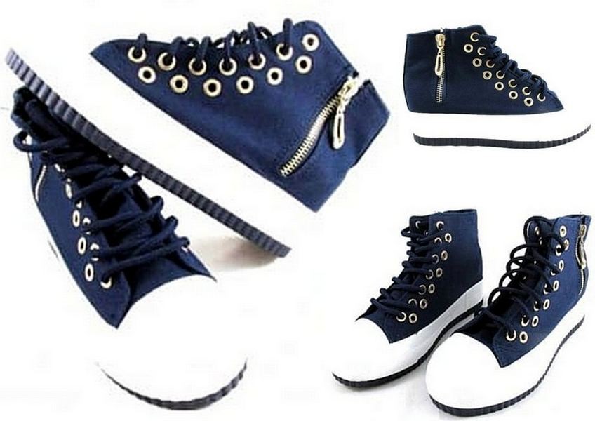 Za najmodniejszą opcję uważa się trampki wykonane z ciemnego dżinsu z białymi podeszwami, ozdobione kolorowymi sznurówkami. Tego typu obuwie hurt polecamy nie tylko do jeansów, ale także do klasycznych spodni.