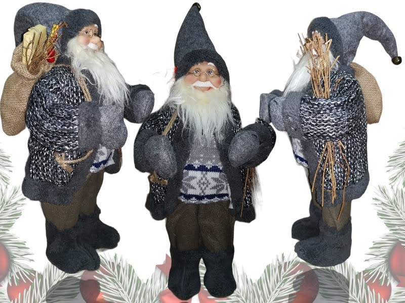 Duży Mikołaj z workiem prezentów 60 cm, szary HURT