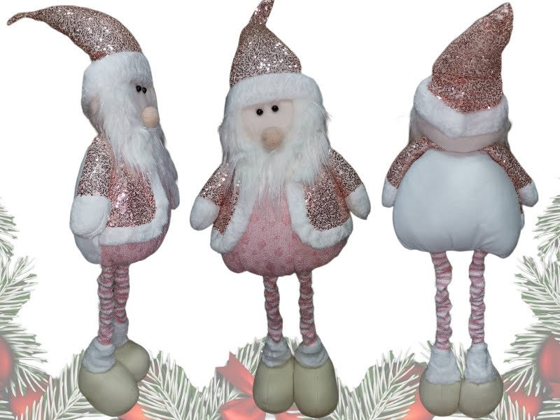 Bajkowa Mikołajowa Dziewczynka ubrana w ciepłe, choć eleganckie ubrania w różowych brokatowych kolorach, uczesała się. Także wzięła ze sobą magiczny nastrój i ,oczywiście, Mikołajkową czapeczkę. Więc Skrzat bajkowa Mikołajowa księżniczka jest gotowa, aby stać na warcie w każdym domu, dopasowany do każdego kąciku, gdyż dzięki regulowanej długości teleskopowych nóżek ( od 47 cm do max 61 cm) idealnie wciśnie się niemal wszędzie.