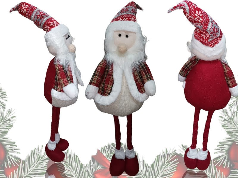 Wesoły czerwony Skrzat Mikołaj na chowanych nogach - 61 cm - HURT.
