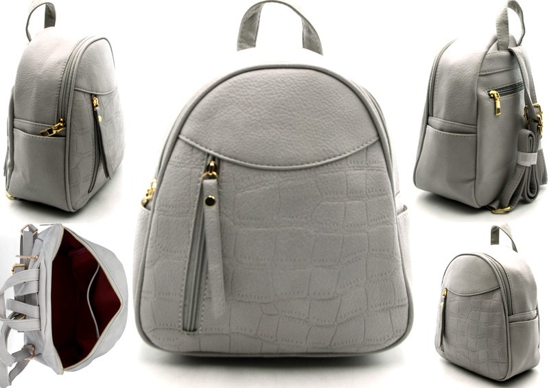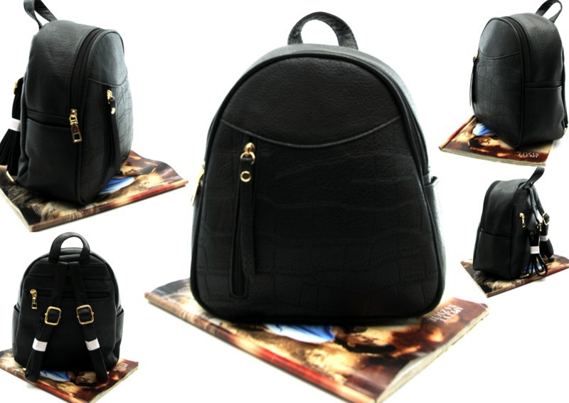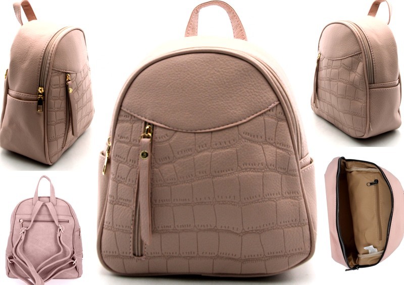 Interesujący model topowego plecaka z nietuzinkowym połączeniem różnych faktur, - matowa gładka eko skóra gustownie uzupełnia eko skórkę w modną w tym sezonie fakturę skóry krokodyla, Model posiada wygodną kieszonkę na suwak z przodu oraz dwie boczne kieszonki.
