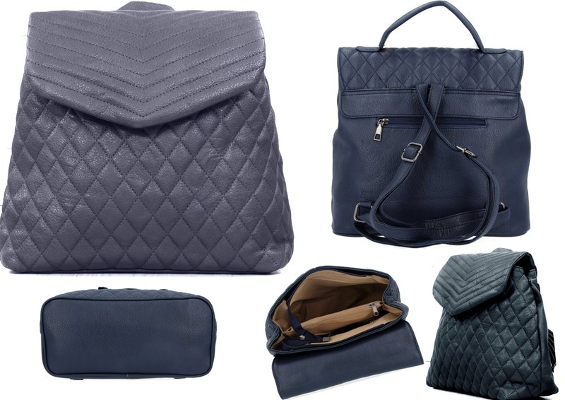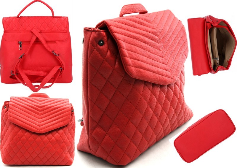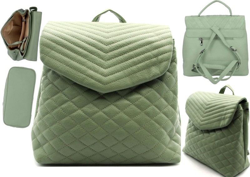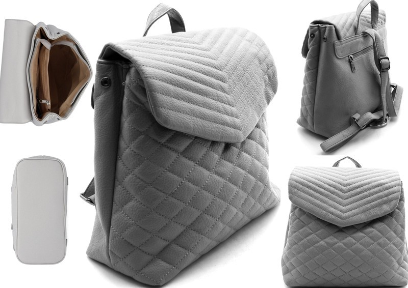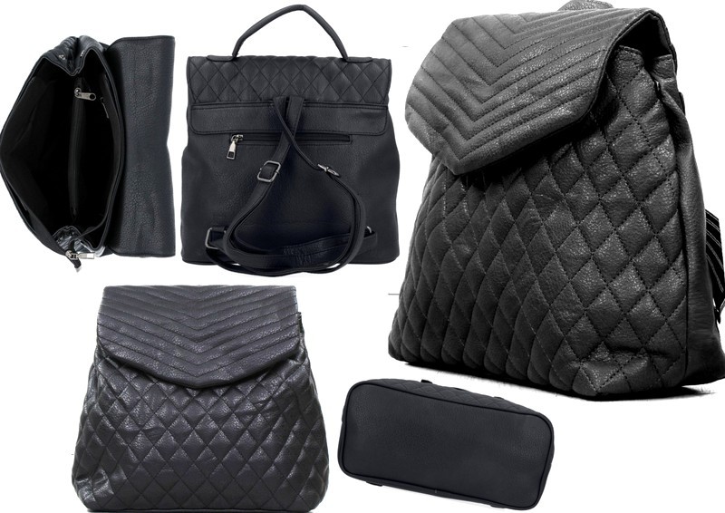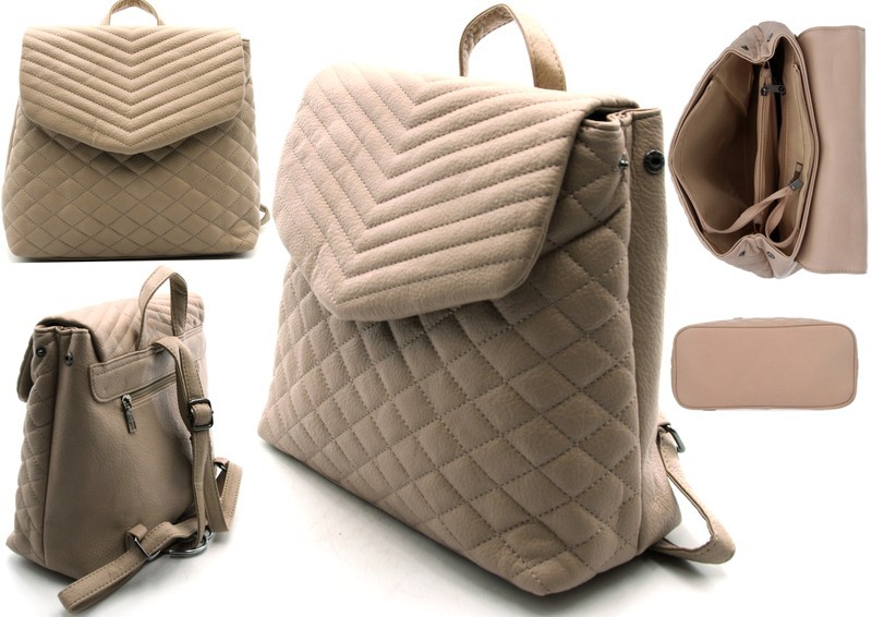 Designerski pikowany plecak damski trzykomorowy HURT.