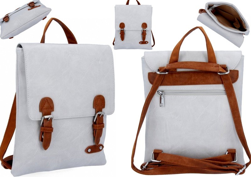 Stylowy dwukolorowy plecak miejski w stylu VINTAGE łatwo przemienia się z plecaka w torebkę i odwrotnie, wystarczy zmienić położenie pasków,