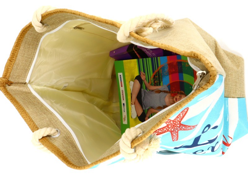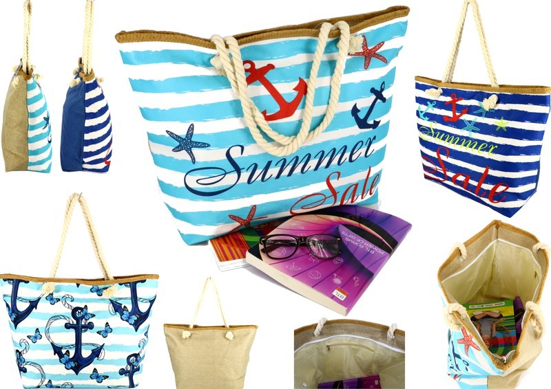 Elegancka, lekka torba hurt wykonana z wysokiej jakości materiałów. Wyściełane wnętrze, zapinane na suwak. Szykowne rączki sznurkowe harmonijnie dopełniają całość. Dzięki tak lekkiej i szykownej torbie plażowej bardzo wygodne spacery po plaży czy letnim mieście. Gustowny nadruk nadaje plażowej torbie wyjątkowej oryginalności.