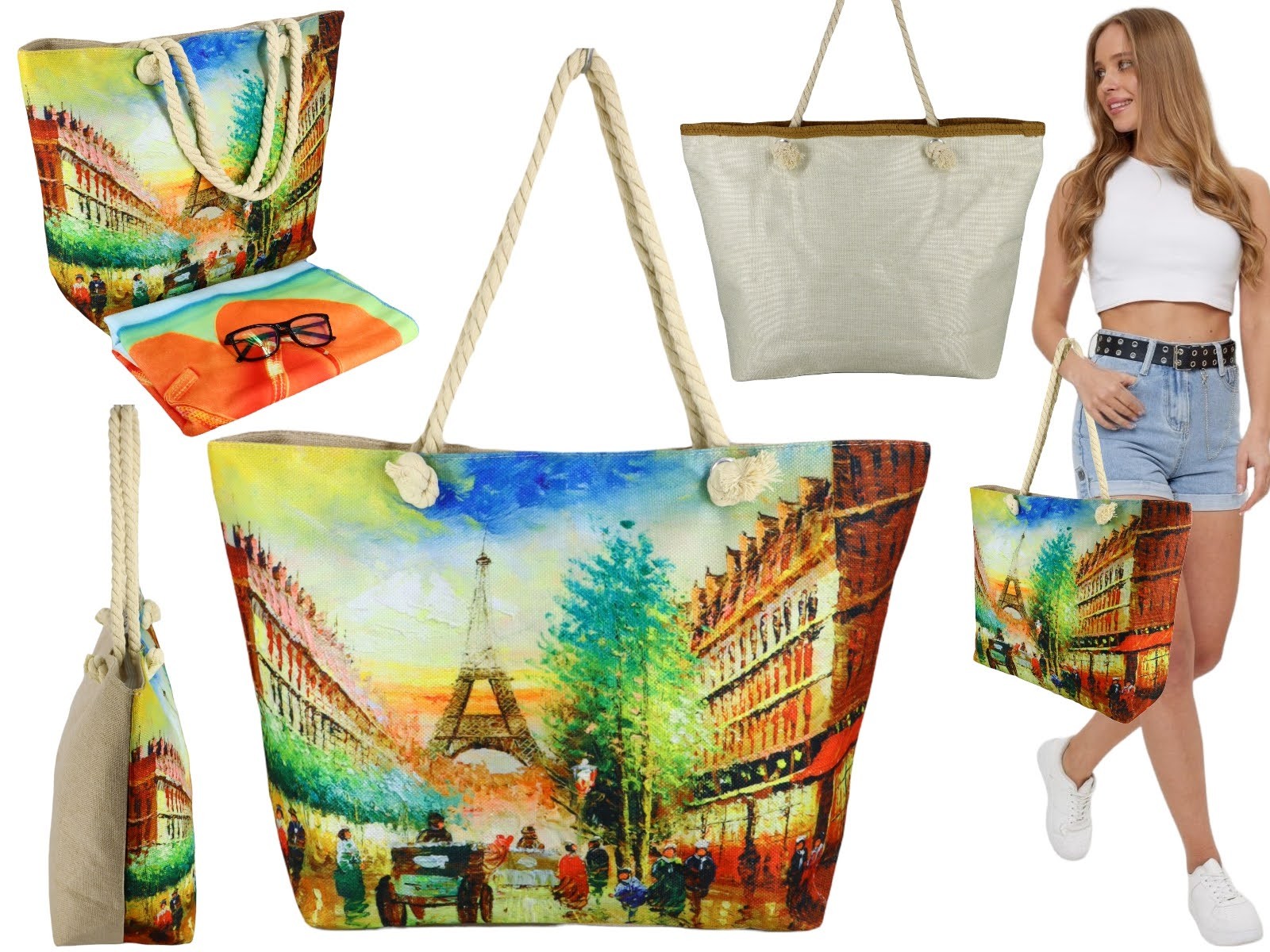 - Torba plażowa w motywy Paryżu wieczorową porą.
