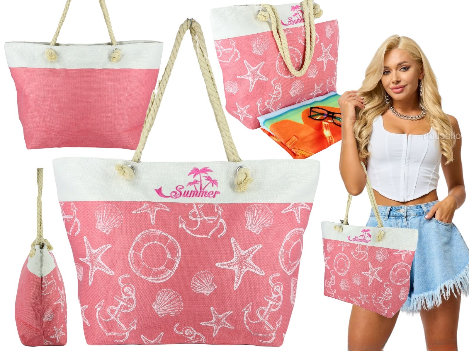 różowa Torba plażowa w morskie gwiazdy, HURT.