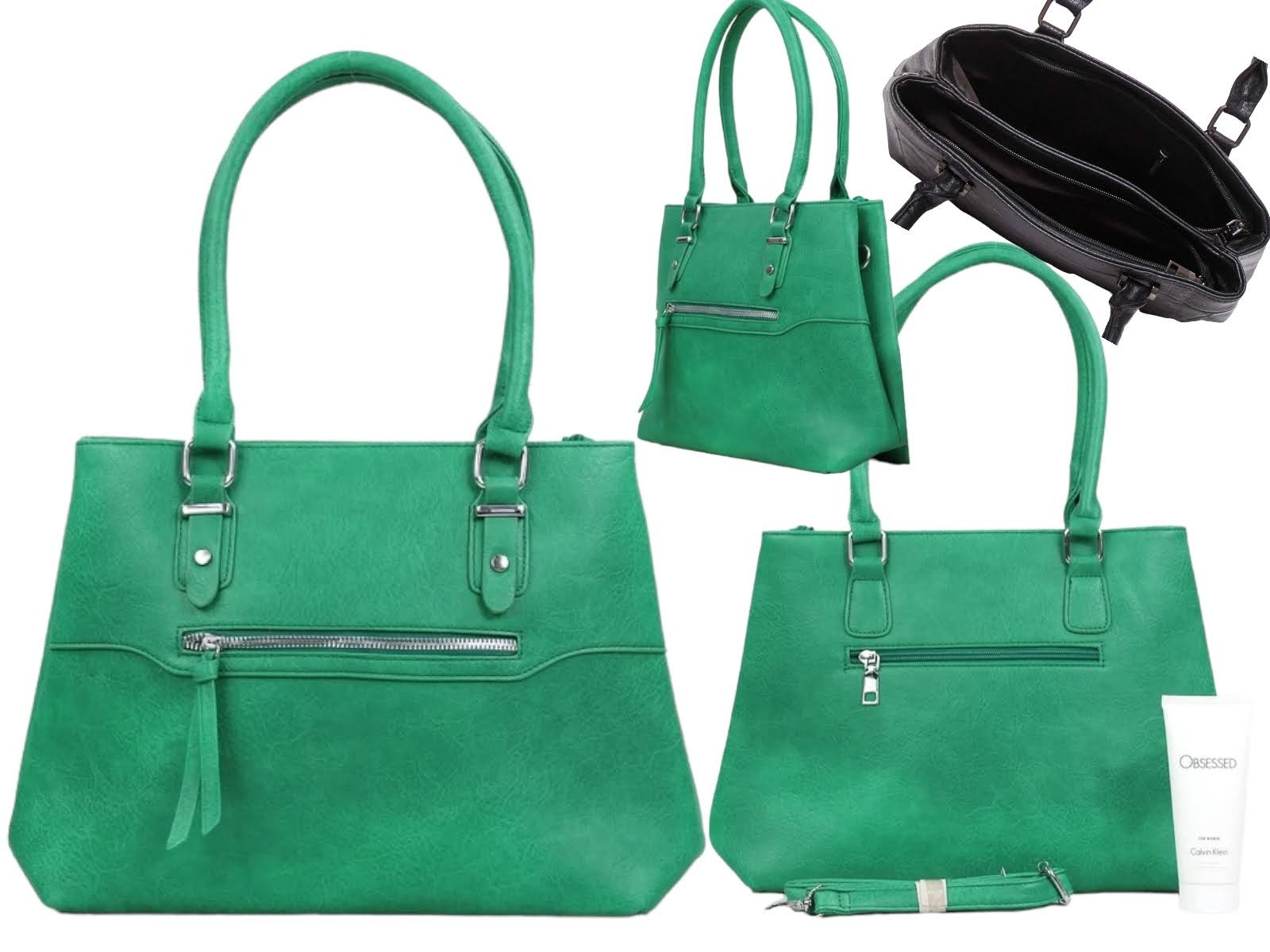 Wyprzedaż, dwukomorowa zielona torebka damska