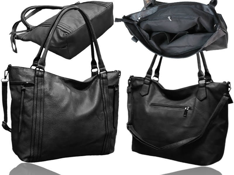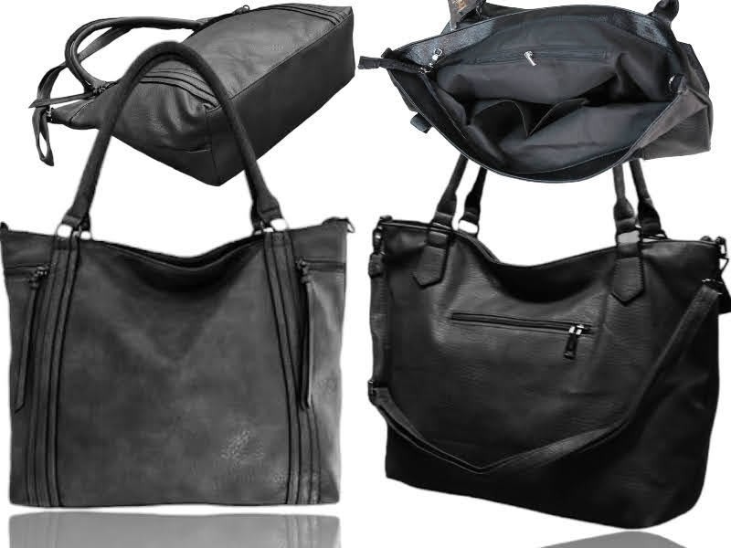 Zmysłowa CZARNA torebka damska hurt, shopper z OZDOBNYMI ZAMKAMI.