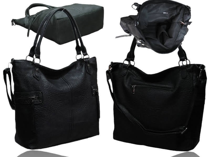 czarna Torebka SHOPPER XXL - stylowa i praktyczna z licznymi kieszonkami.