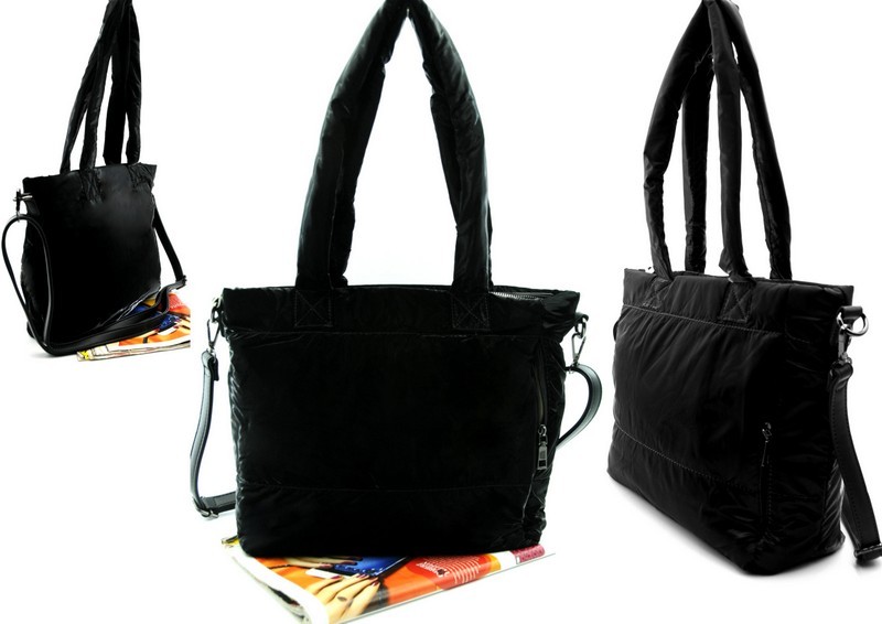 Pikowana czarna kurtkowa torebka damska hurt z kieszonką, must have sezonu jesień 2021.