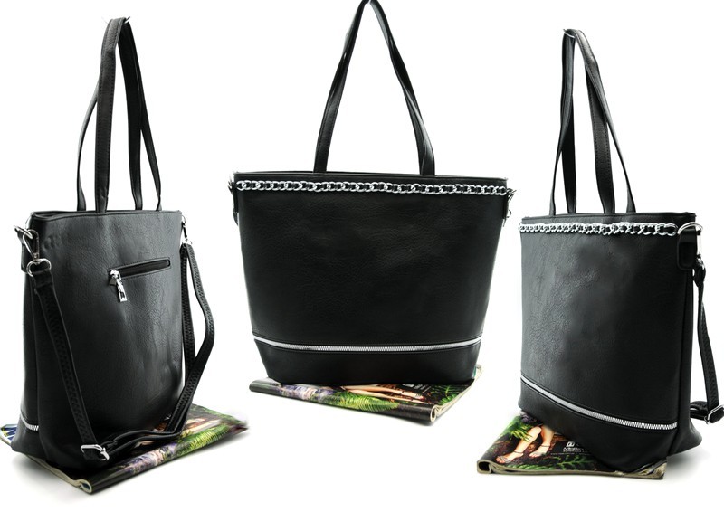 Czarna torebka damska hurt, torba typu shopperka z łańcuchem.