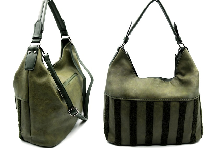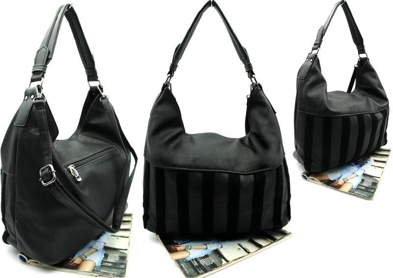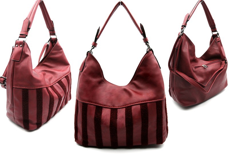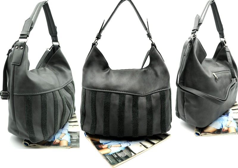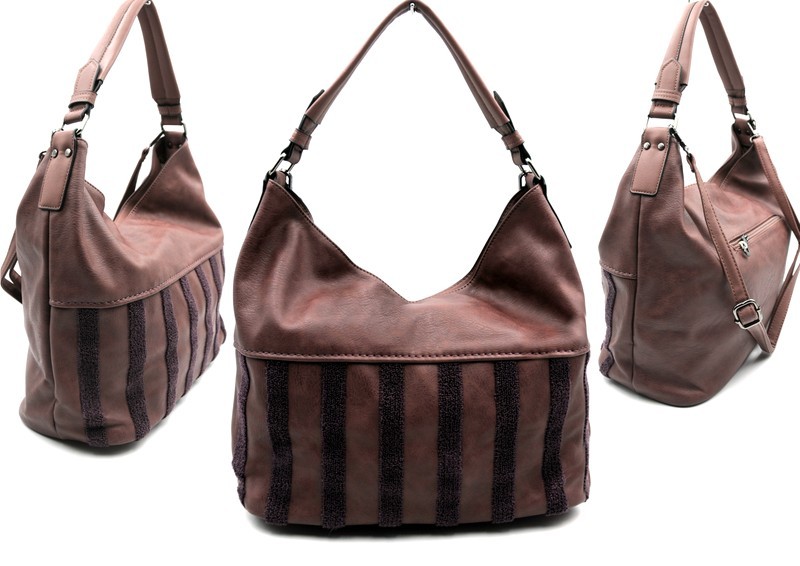 Ten model torebki damskiej w kształcie worku o wyrazistym nowoczesnym designu wykonany z wysokiej jakości skóry ekologicznej. Eleganckie linie sylwetki torebki uzupełniają kobiece detale, - ekstrawaganckie lecz mega kobiece łączenie różnych faktur w modne lekko puszyste pasy,- integralna część charakterystycznego stylu. Ponadto pojemny worek, wygodne ucho oraz odpinany regulowany pasek na ramię nadają modelowi uniwersalność i pozwalają na tworzenie spektakularnych stylizacji na co dzień. Dodatkowo duża ilość kieszonek oraz przegroda w środku z pewnością pozwoli na utrzymanie porządku.