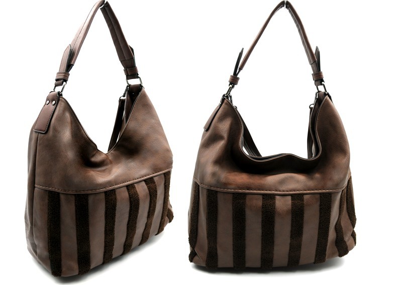 Stylowa pojemna torebka damska, worek w puchate pasy.