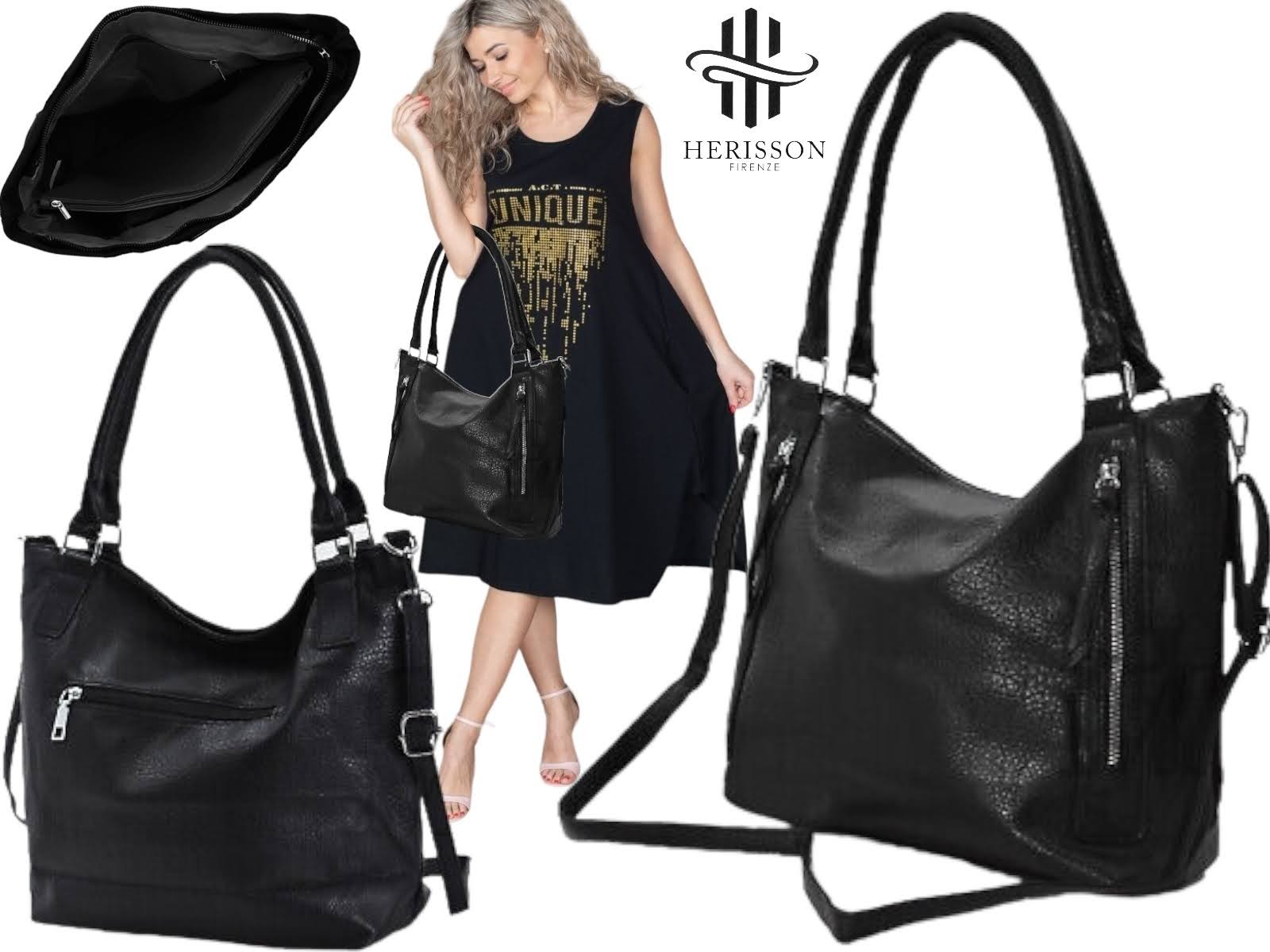 • Torebka z kolekcji znanej marki HERISSON FERENZE cenionej przede wszystkim za wysoką jakość wykonania z dbałością o każdy szczegół: nie pęka, nie blaknie na słońcu, jest odporna na wilgoć i zmiany temperatury.