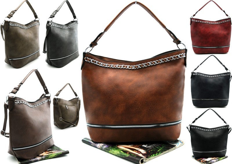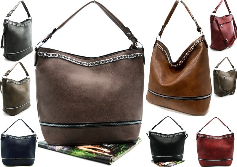 Pojemna torebka damska hurt, torba typu worek z łańcuszkiem.