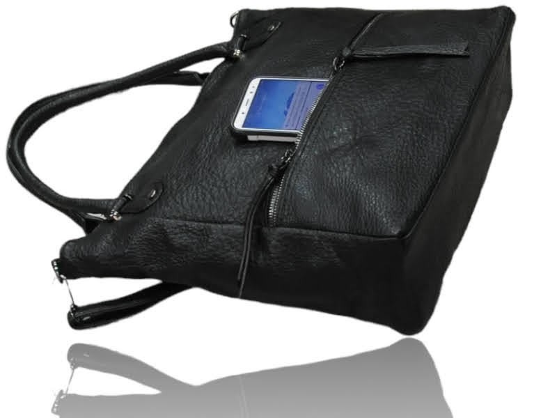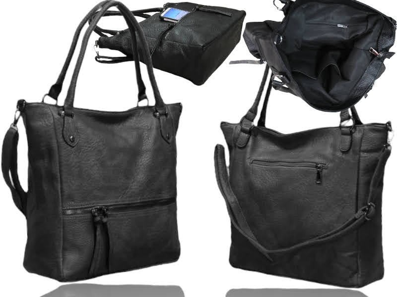 Uniwersalna zawsze modna torebka shopper z dużą ozdobną kieszonką.