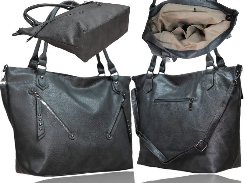 Klasyczna przepastna torebka shoppebag z asymetrycznymi kieszeniami, bestseller sezonu.