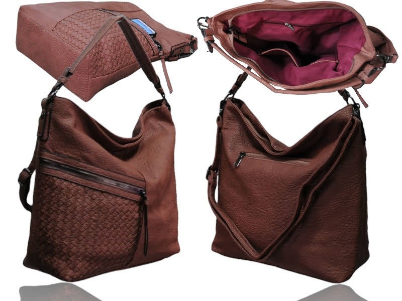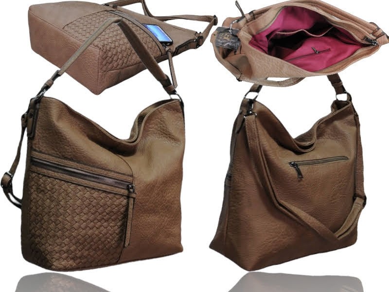 Elegancka duża torebka damska wykonana z wysokogatunkowej skóry ekologicznej. Lakoniczne, ciekawe linie tworzące intrygujący kształt worku "włóczęngi". Natomiast przednią ścianę torebki zdobi jakże urocza plecionka, dodatkowo zakończona dekoracyjnym zamkiem. Zaś dla większej wygody użytkowej zamek chowa przepastną kieszeń.