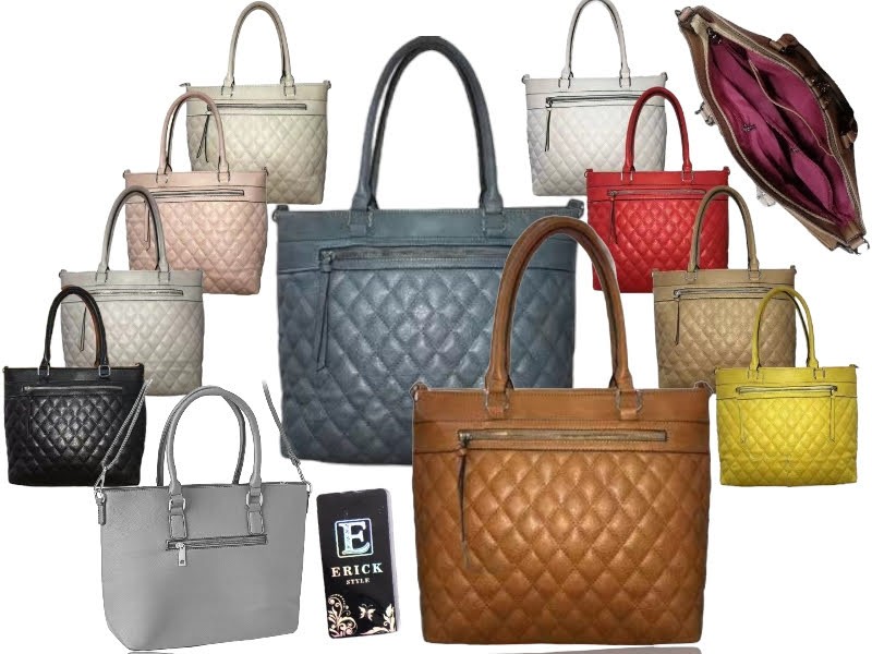 Klasyczna duża damska torebka włoskiej marki "Erick Style" z wysokogatunkowej skóry ze skóry ekologicznej w stylu casual business. Charakteru torebce dodaje mega efektowny pikowany przód zakończony ogromną dekoracyjną z zarazem użytkową kieszenią.