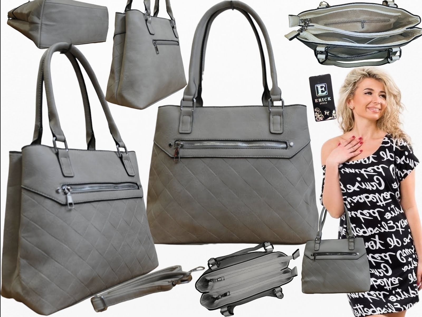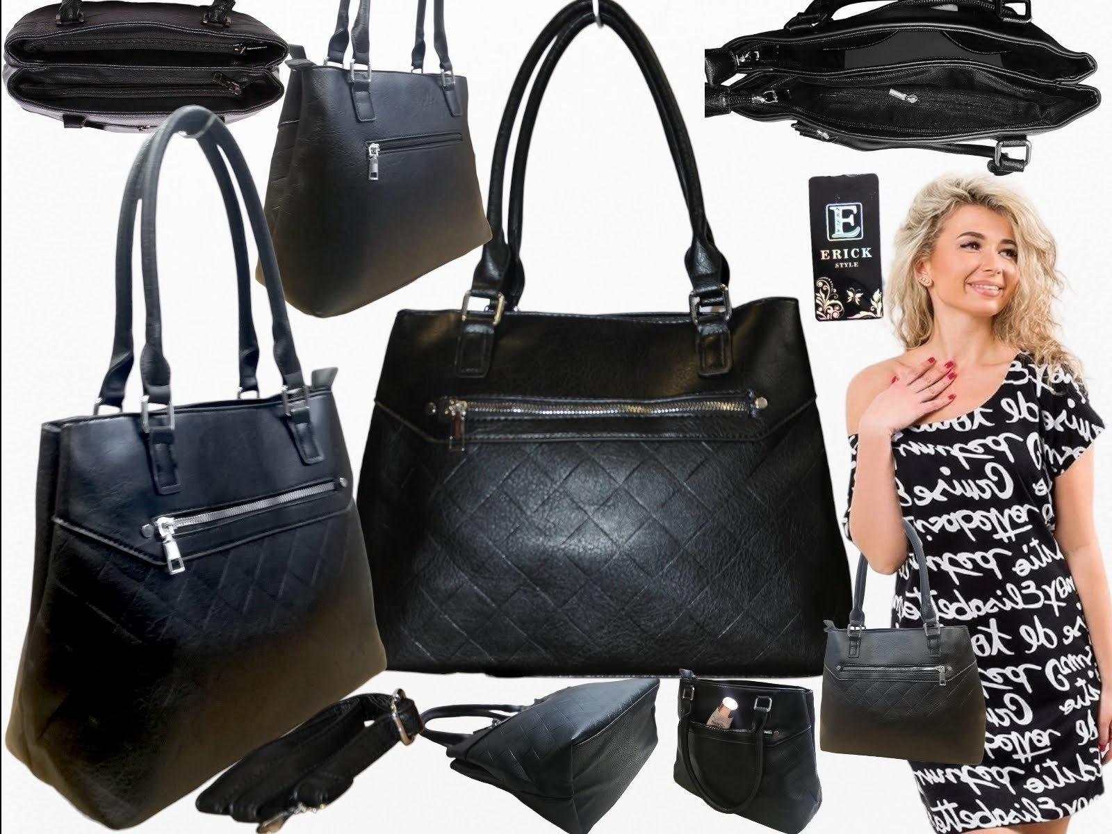 Uniwersalna dwukomorowa torebka z pikowanym przodem, HURT