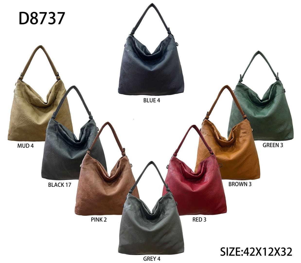 - Torebka w kształcie zawsze modnego, a co najważniejsze wygodnego w użytkowaniu worka z długim uchem, które umożliwiają noszenia torebki w zimę na kurtkę, poza tym do torebki dołączony długi regulowany pasek.