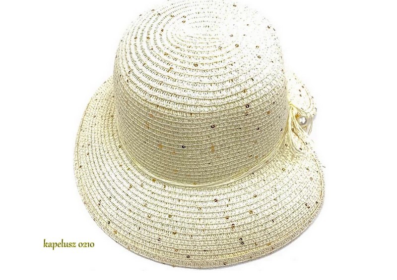 Anielski letni kapelusz z rajską perełką HURT- perła kolekcji.