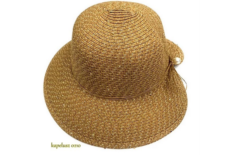 Letnie damskie kapelusze mają ogromną różnorodność modeli i wariantów kolorystycznych. Niewątpliwie większość kobiet, kupując taki kapelusz, postrzega go jedynie jako rzecz dekoracyjną. Jednak letnie kapelusze mają szczególny praktyczny cel. Tak, doskonale chronią skórę i oczy przed szkodliwym promieniowaniem ultrafioletowym. Oznacza to, że piękno w tym przypadku idzie w parze z praktycznością i niezawodnością. Uderzającym tego przykładem może być ten wspaniały kapelusz, - nowość naszej internetowej hurtowni kapeluszy ZORMAX. Lekki, wygodny, elegancki, może stanowić uzupełnienie nawet eleganckiego garnituru. Pola kapelusza posiadają ciekawy liekko zaokrąglony kształt, co sprawia, że produkt prezentuje się jeszcze ciekawiej. Efektownym zakończeniem stylu kapeluszu jest duża rajska perełka, schowana w słomkowych niciach, niczym skarb na pirackiej plaży.