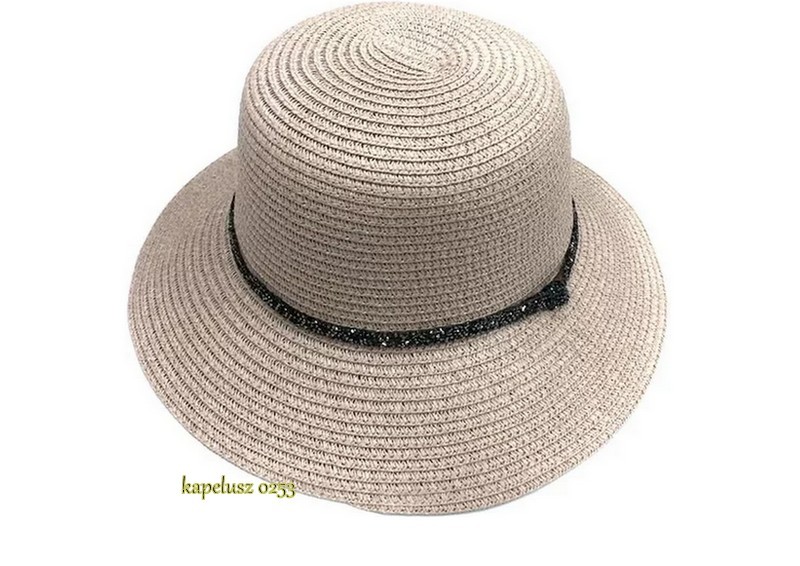 Modny kapelusz w odcieniach natury ze srebrną plecionką HURT.