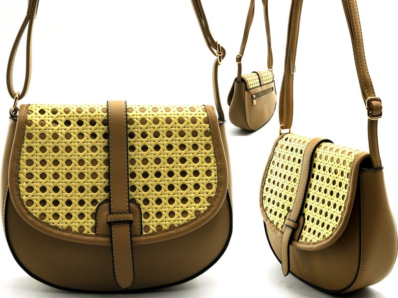 Uroczy model hurt torebki listonoszki przez ramię. Półokrągły kształt torebki damskiej jest nie mniej popularny wśród kobiet o wyrafinowanym guście. Brak ostrych rogów na torebce oraz delikatny dekor z modnej w tym sezonie imitacji słomy na przedniej ścianie nadaje obrazowi delikatności i kobiecości z nawiązaniem do natury. Torebka damska idealna na co dzień. Wykonana z wysokiej jakości skóry ekologicznej, niezwykle komfortowa w użytkowaniu.