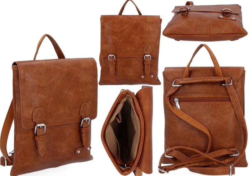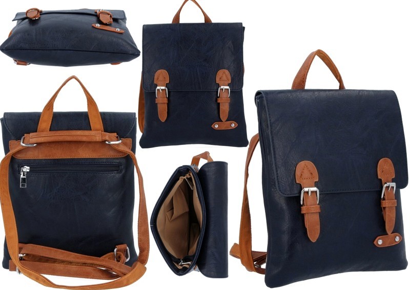 Stylowy dwukolorowy plecak miejski w stylu VINTAGE łatwo przemienia się z plecaka w torebkę i odwrotnie, wystarczy zmienić położenie pasków,