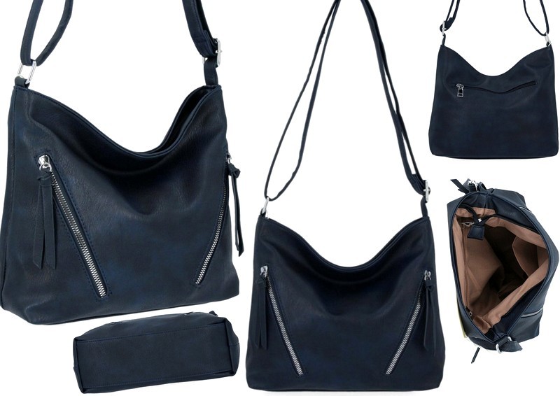 Praktyczna torebka listonoszka z ukośnymi kieszeniami HURT.