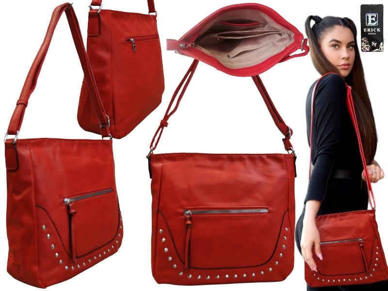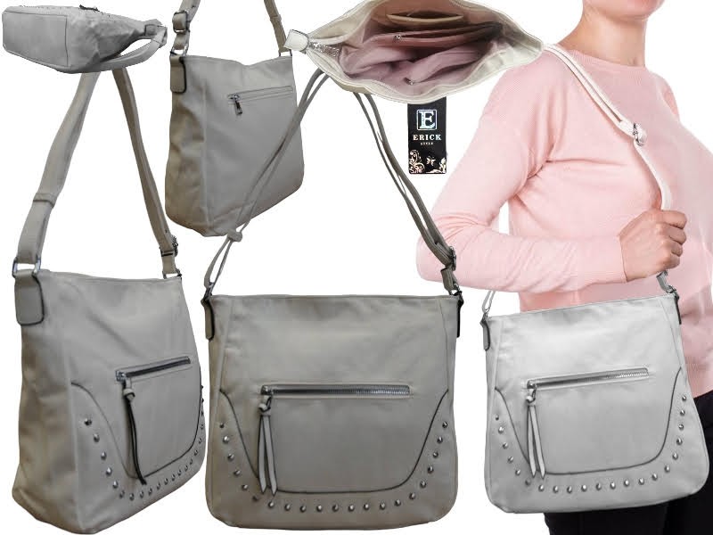 Stylowa torebka listonoszka na długim pasku stanie się nieodzownym dodatkiem wiosennej garderoby. Twoje Klientki polubią ten model włoskiej marki Erick Style za ciekawy nowoczesny design i wygodę użytkową. Przód torebki zdobią delikatne ćwieki z lekkim nawiązaniem do stylu Rockowego.