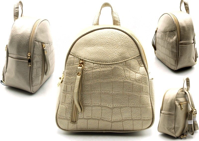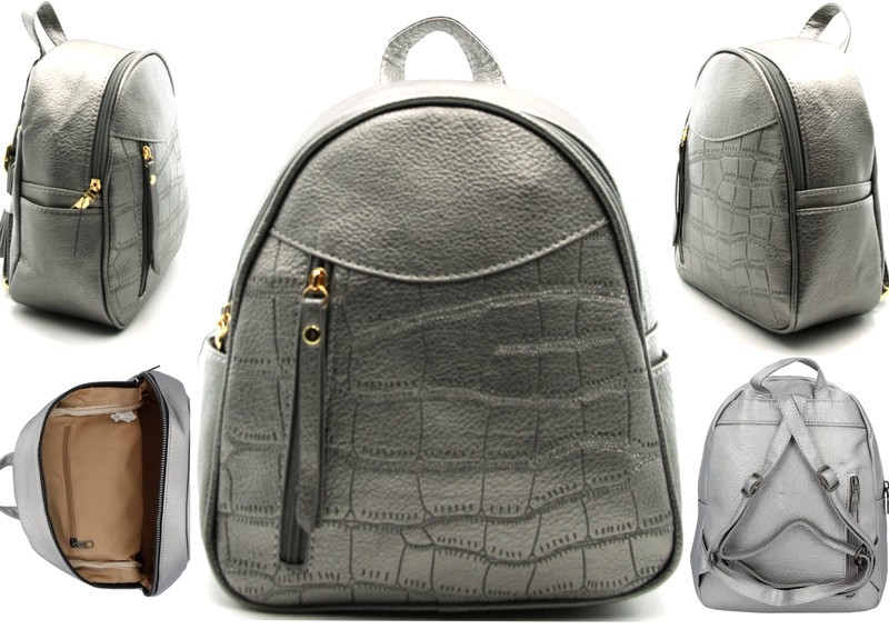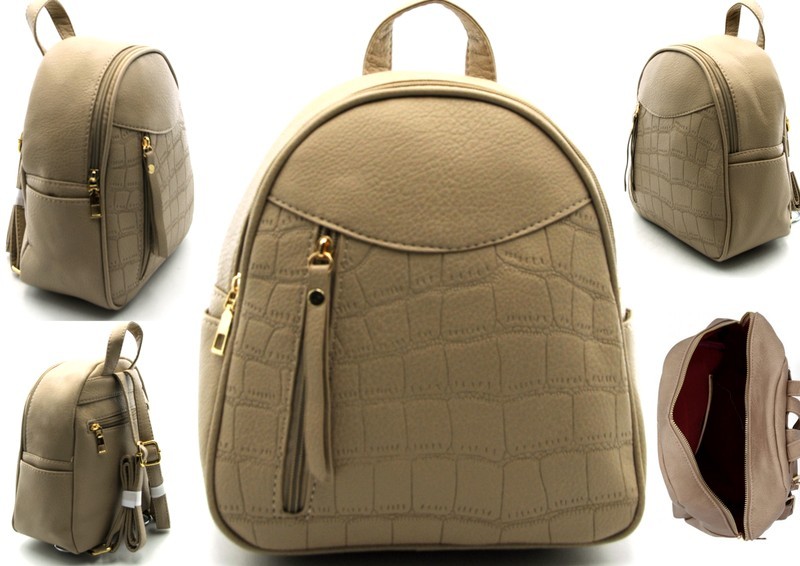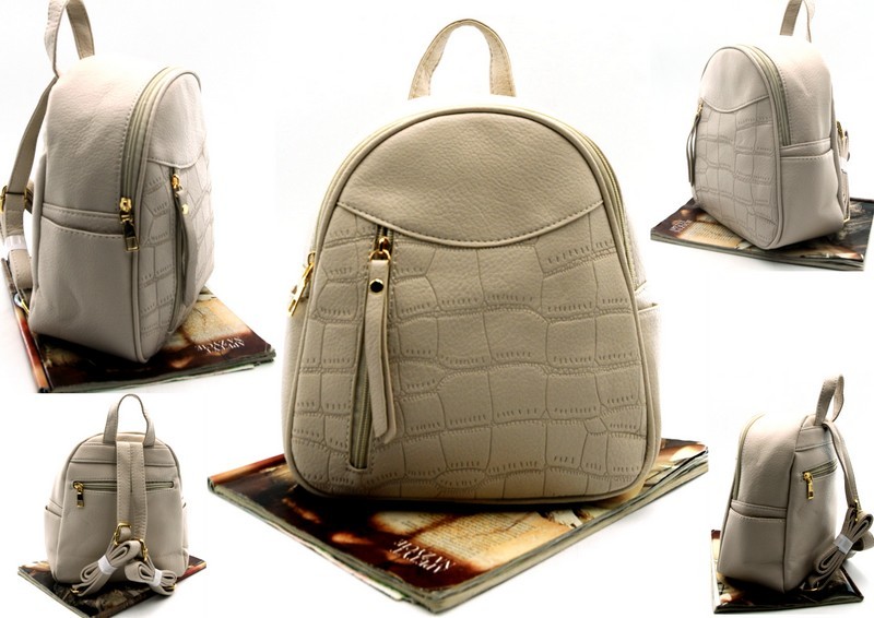 Interesujący model topowego plecaka z nietuzinkowym połączeniem różnych faktur, - matowa gładka eko skóra gustownie uzupełnia eko skórkę w modną w tym sezonie fakturę skóry krokodyla, Model posiada wygodną kieszonkę na suwak z przodu oraz dwie boczne kieszonki.
