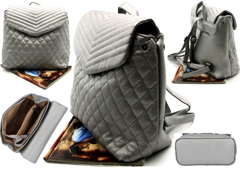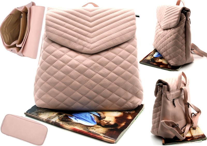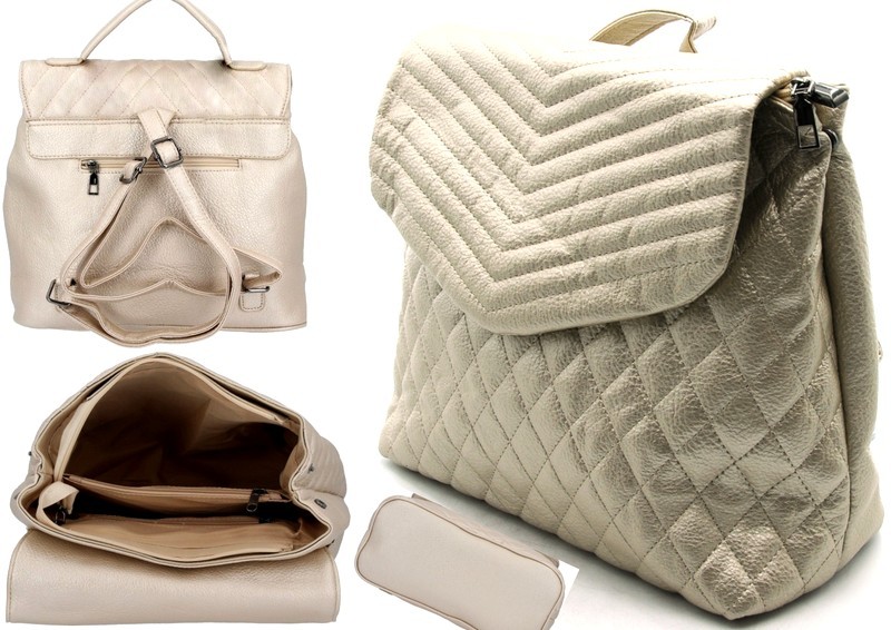 Designerski pikowany plecak damski trzykomorowy HURT.