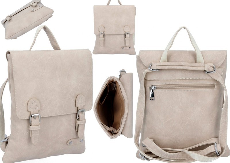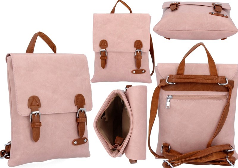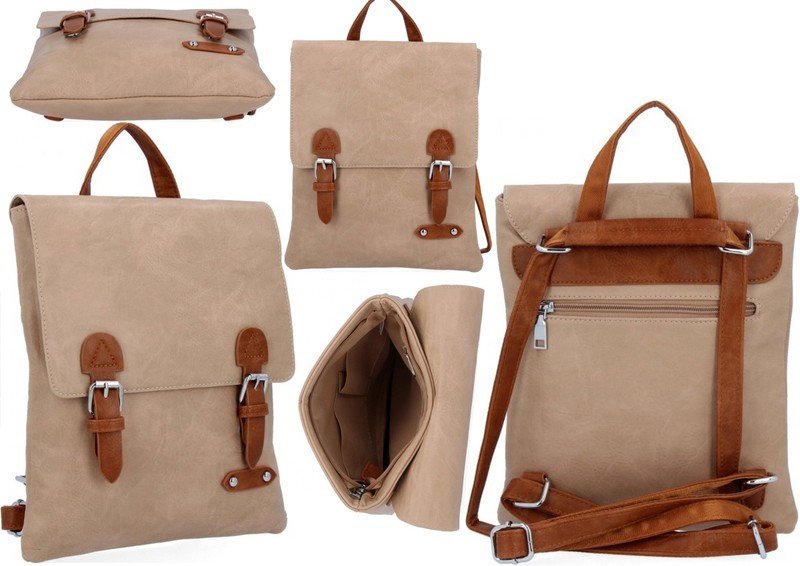 Stylowy dwukolorowy plecak miejski w stylu VINTAGE łatwo przemienia się z plecaka w torebkę i odwrotnie, wystarczy zmienić położenie pasków,
