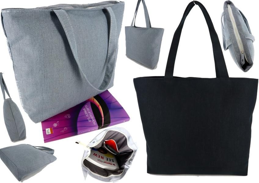 Torba na zakupy z tkaniny typu shopper bag, - to eko trend, który opanował świat. Charakteryzują się praktycznością, trwałością i przystępna cena, a ponadto stylowym i modnym desingiem – tak oryginalne torby urzekają współczesnych konsumentów. Torba zamykana na suwak.
