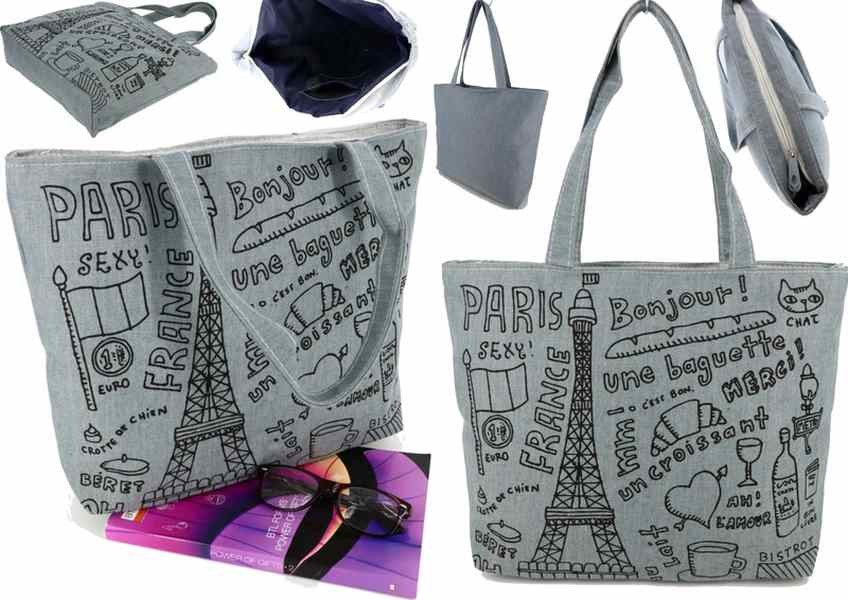 Stylowa torba na zakupy, torba gospodarcza, shopper bag z wieżą Eiffla.